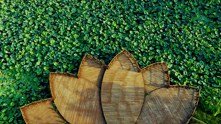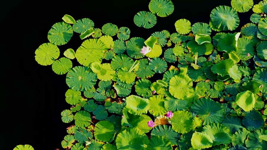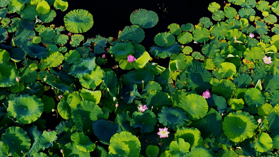 盛夏时节,安徽省颍上县八里河的荷花迎来了盛放期。风过水面,荷叶田田,芙蓉朵朵,相映成趣。(徐红梅)