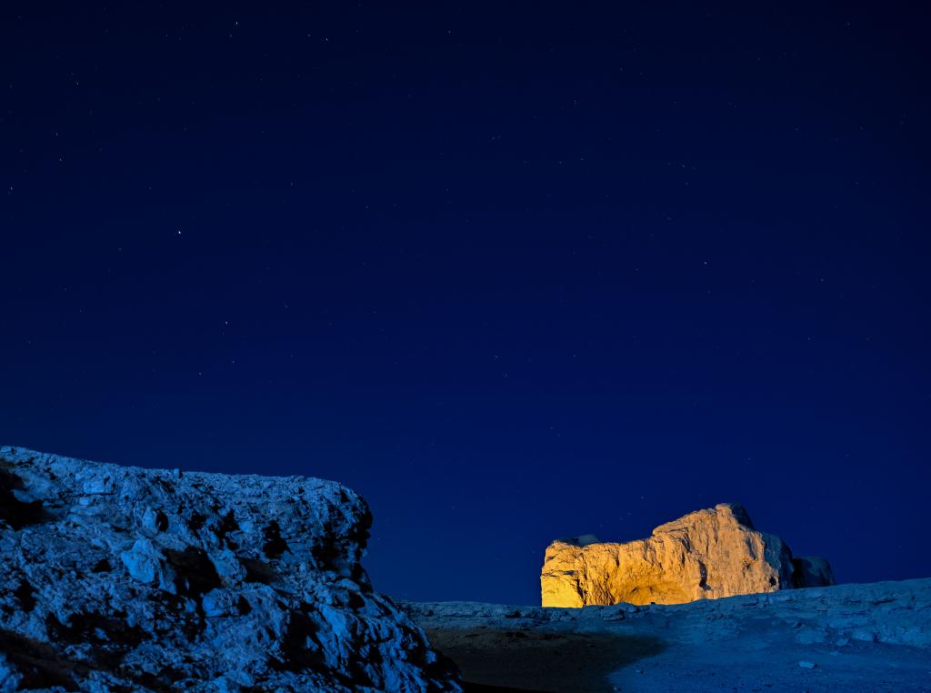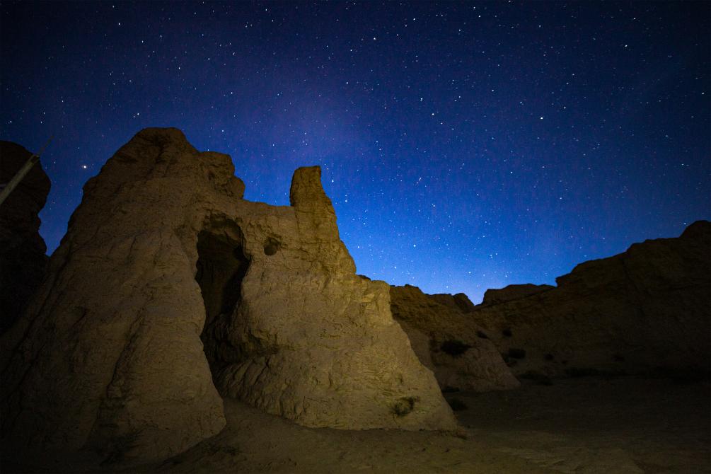 夜幕下的交河故城。(吐鲁番市文物局交河故城文管所供图)