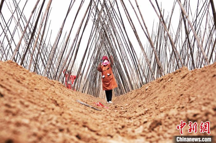 谷雨时节,山西省运城市新绛县龙兴镇桥东村和周边村,以及相邻县市,山药进入种植农忙季节,村民们抓紧晴好天气,整田平地、打孔、抢种、扎藤苗架子,田间一派繁忙景象。
