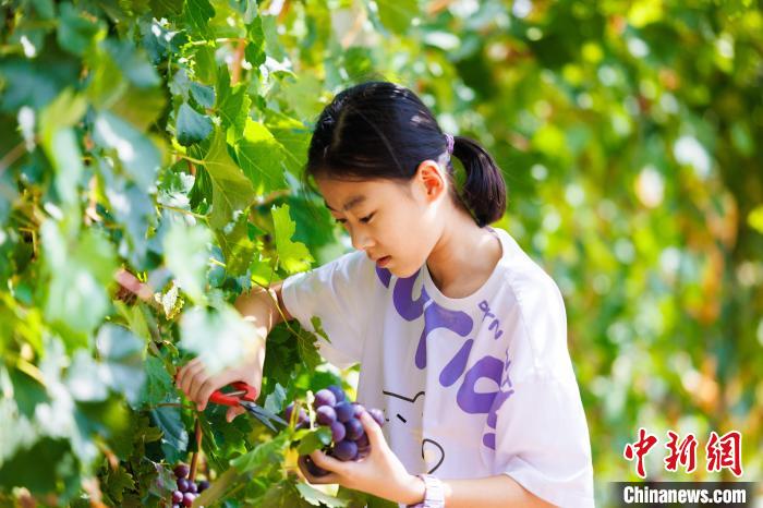 2023年9月,葡萄丰收时,游客前来采摘葡萄。 (资料图)乌力更 摄