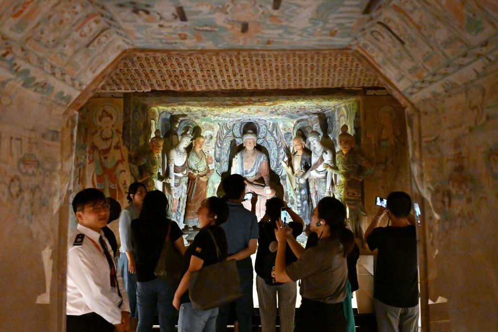 游客参观在中华艺术宫(上海美术馆)举办的“何以敦煌”艺术展。新华社发(陈浩明摄)