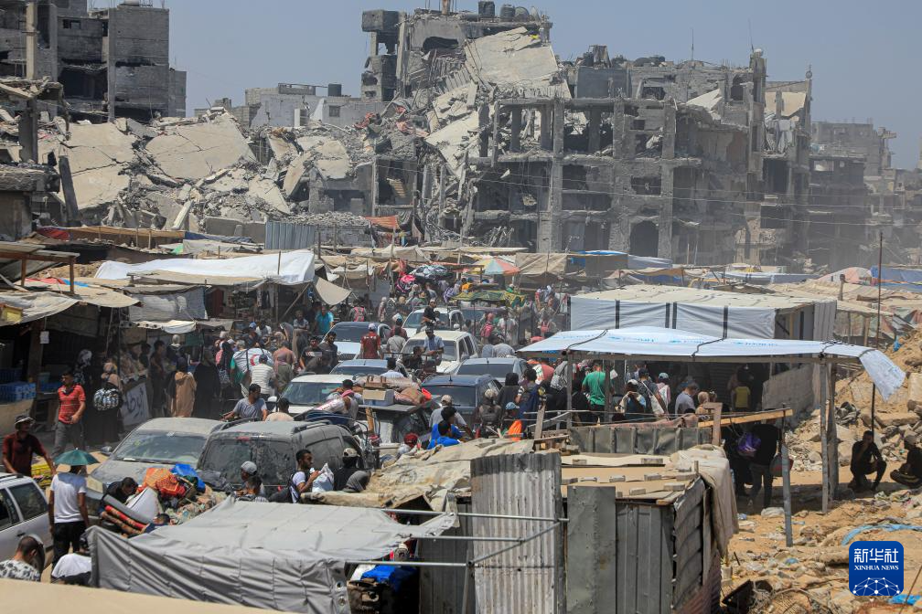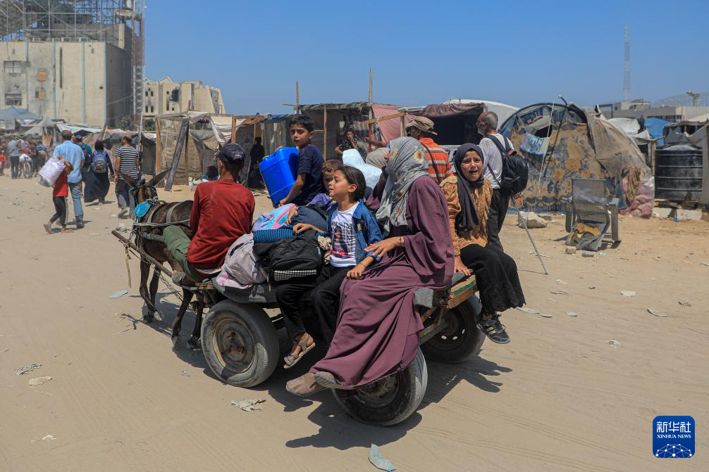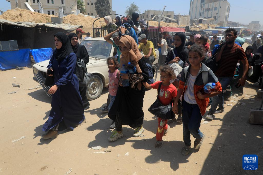 7月22日,在加沙地带南部城市汗尤尼斯,人们逃离家园。新华社发(里泽克·阿卜杜勒贾瓦德摄)