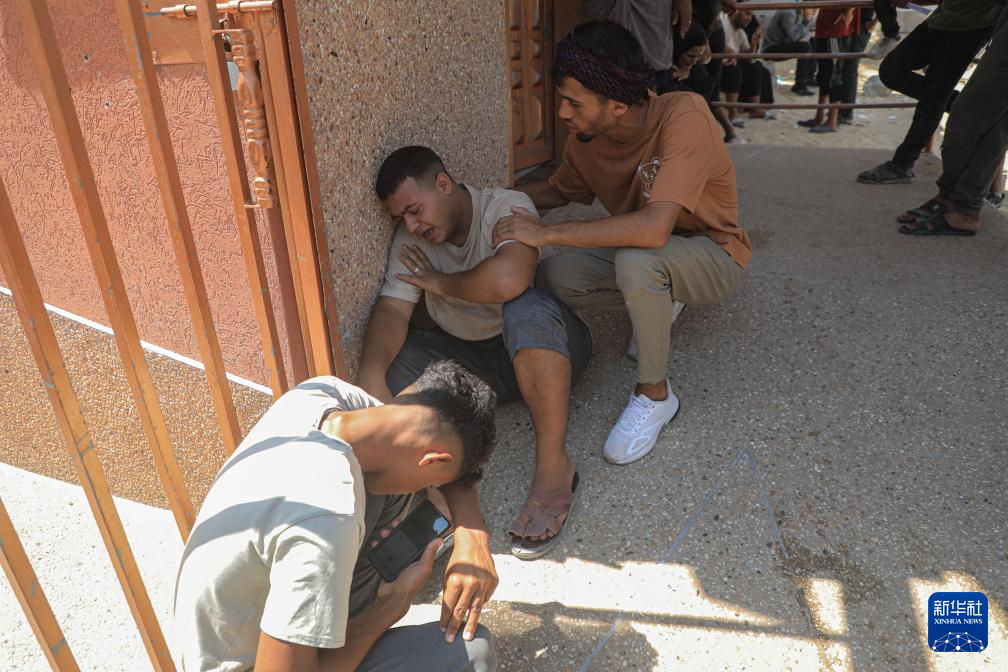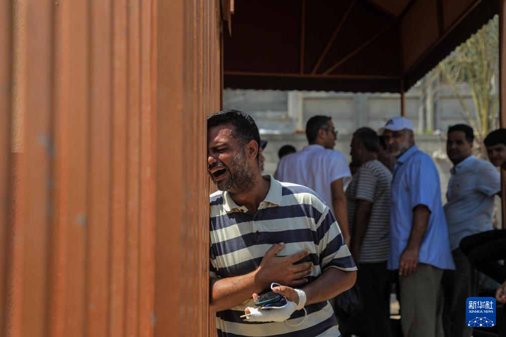 7月22日,在加沙地带南部城市汗尤尼斯,人们哀悼死难者。新华社发(里泽克·阿卜杜勒贾瓦德摄)