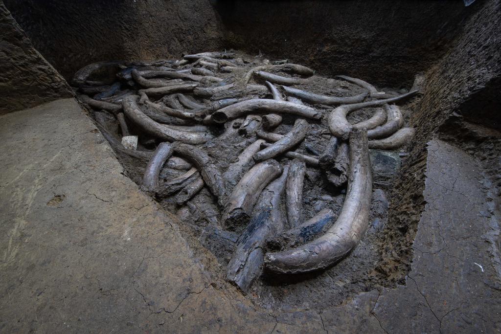 在成都考古中心展出的象牙(资料图片)。新华社发