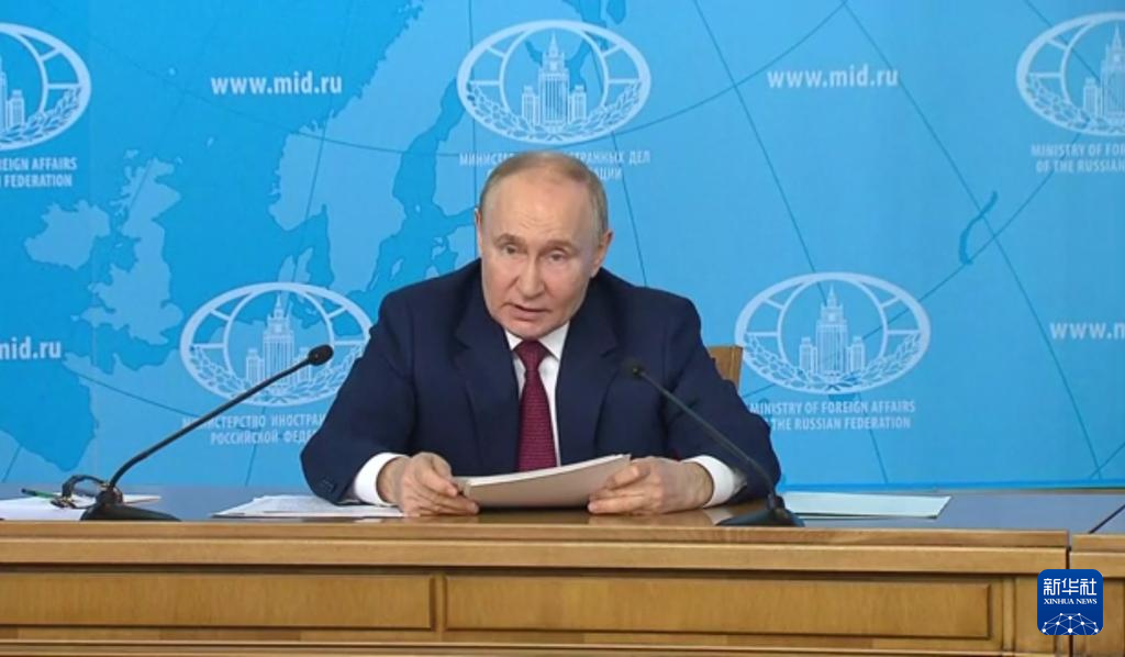 6月14日,在俄罗斯首都莫斯科,俄罗斯总统普京在俄外交部发表讲话(视频截图)。新华社发