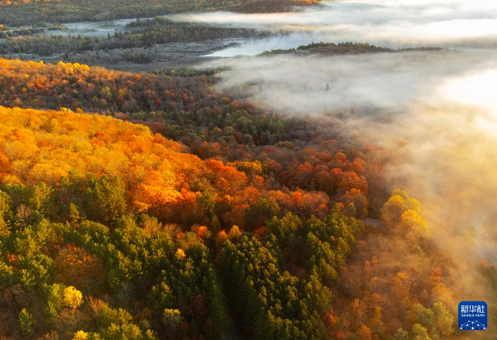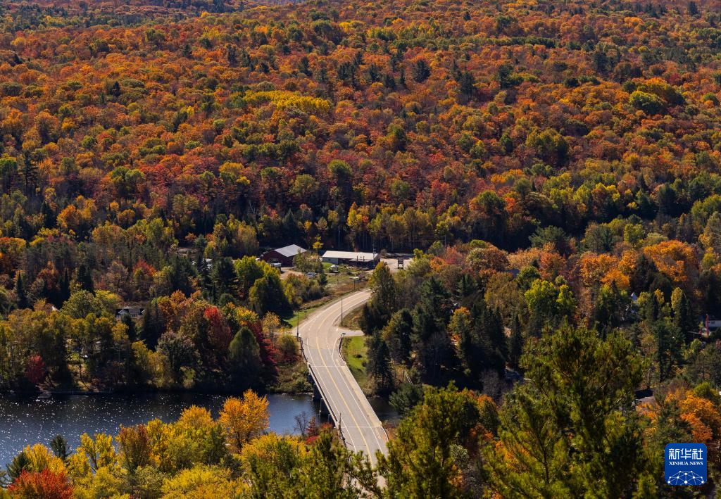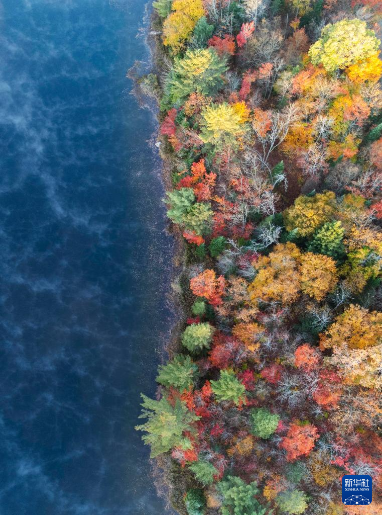 这是10月9日在加拿大安大略省亨茨维尔附近拍摄的秋色(无人机照片)。