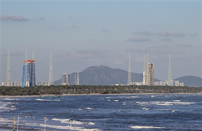 在海南文昌拍摄的海南商业航天发射场一号发射工位(左)和二号发射工位(右)。资料照片