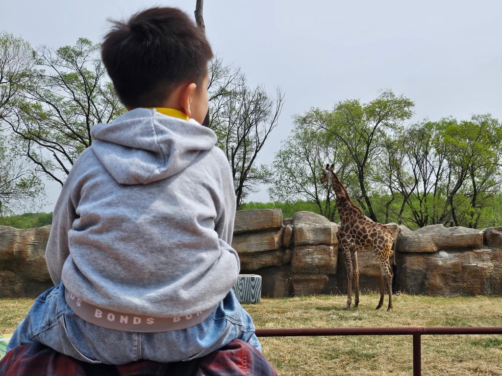 5月4日,游客在齐齐哈尔市龙沙动植物园游玩。新华社记者张玥 摄