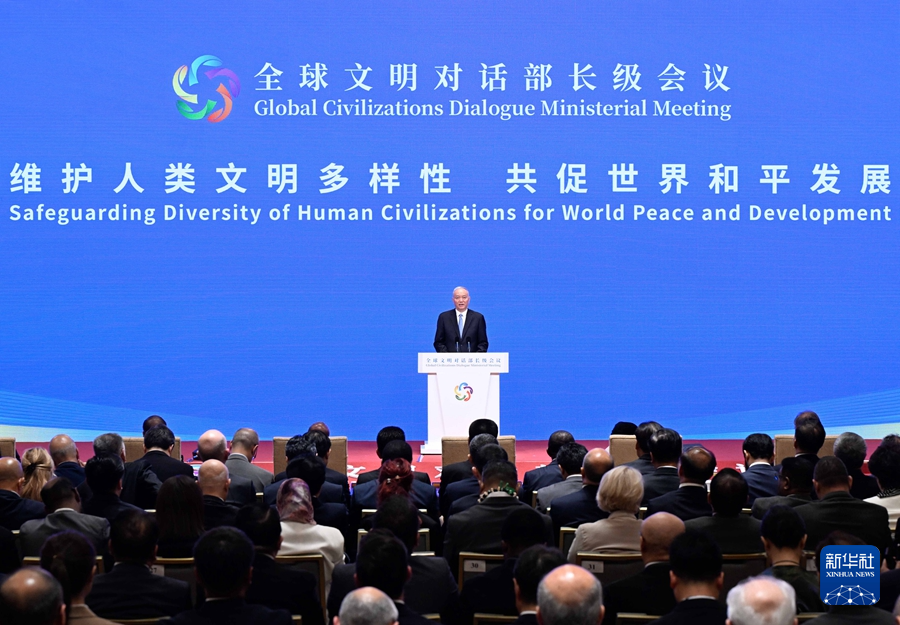 7月10日下午,全球文明对话部长级会议在北京开幕。中共中央政治局常委、中央书记处书记蔡奇出席开幕式并发表主旨讲话。新华社记者 申宏 摄