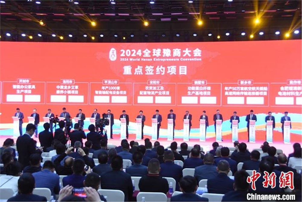 图为2024全球豫商大会项目签约仪式。 中新社发 王宇 摄