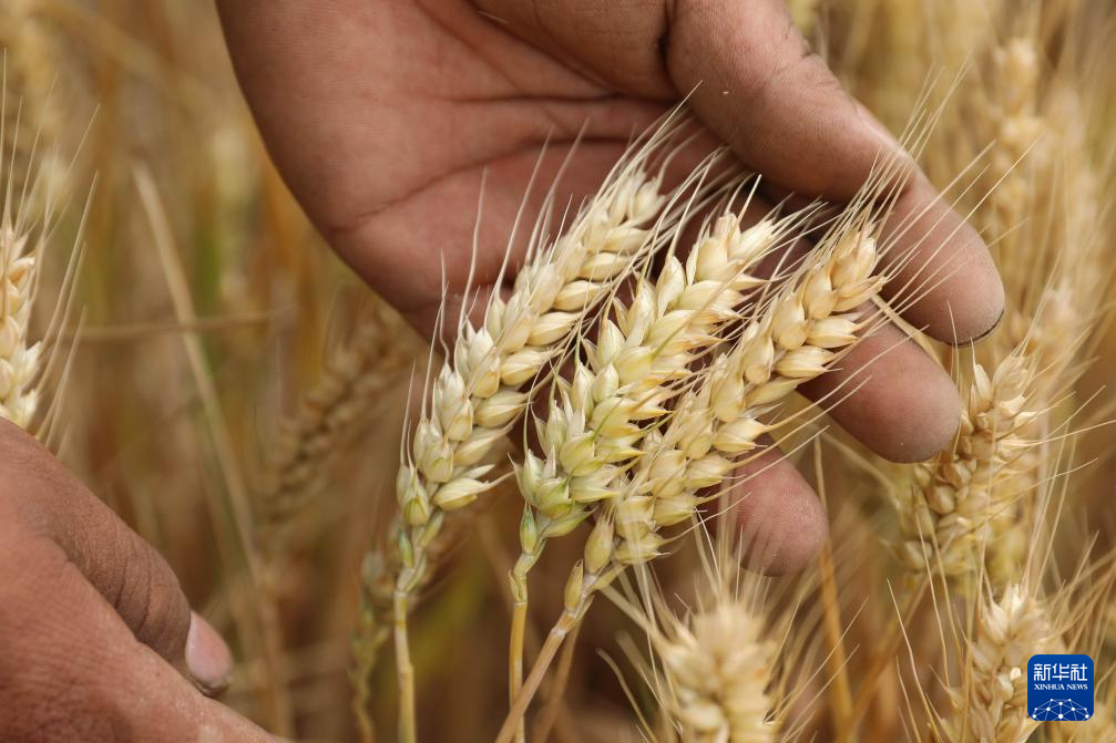 5月13日,河南省平顶山市宝丰县闹店镇李官营村村民在查看小麦成熟度。
