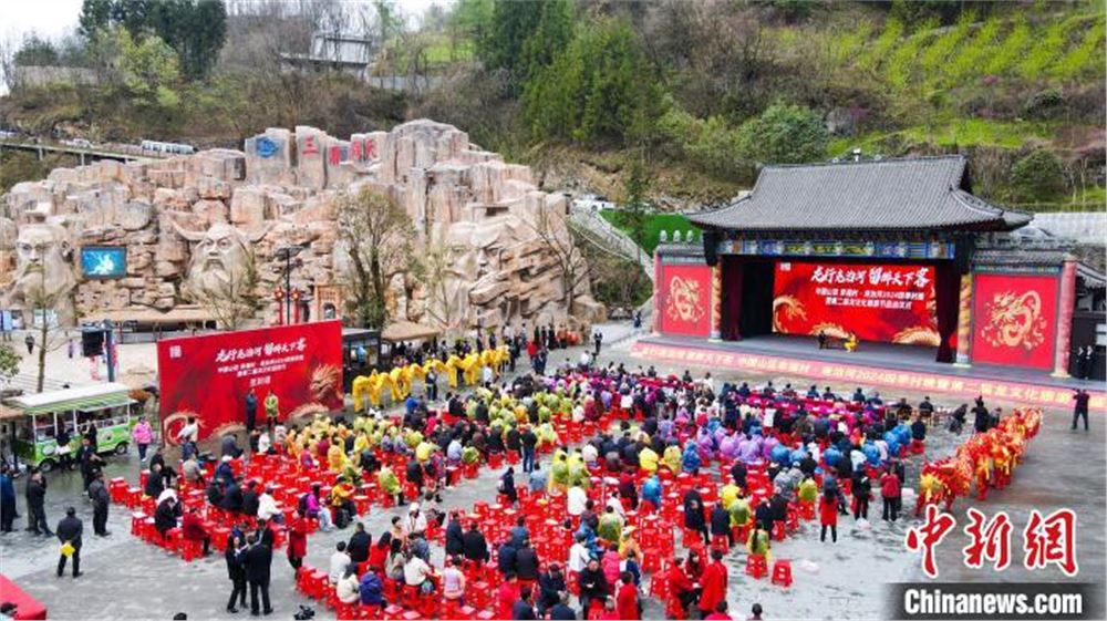中新网襄阳4月10日电 (张倩龙 张玮)中国山区幸福村·尧治河2024四季村晚暨第二届龙文化旅游节10日在湖北省保康县马桥镇尧治河村启幕,此次活动以龙文化、尧文化等为抓手,将非物质文化遗产与旅游业深度融合。