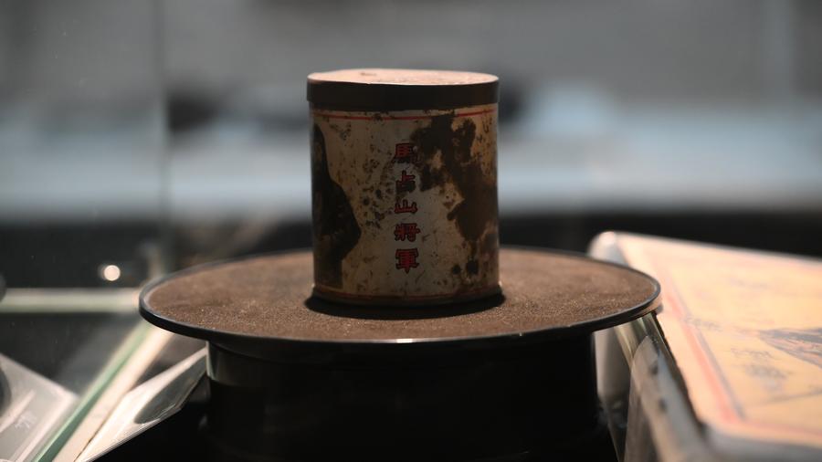 泰来县江桥抗战纪念馆中展出的马占山牌香烟烟盒(6月25日摄)。新华社记者 张启明 摄