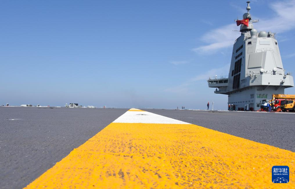 这是首航试验中的中国海军福建舰(5月1日摄,无人机照片)。新华社发(蒲海洋 摄)