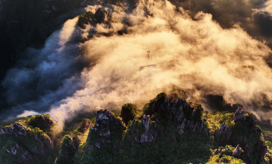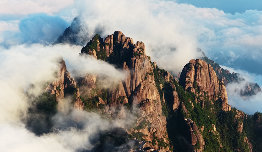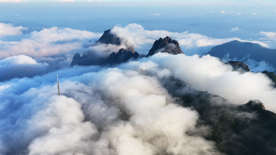 秋日的安徽黄山风景区,云海翻腾,气象万千。峰峦之间烟岚云岫,构成了一幅雄伟壮阔的自然画卷。(吴文贵)