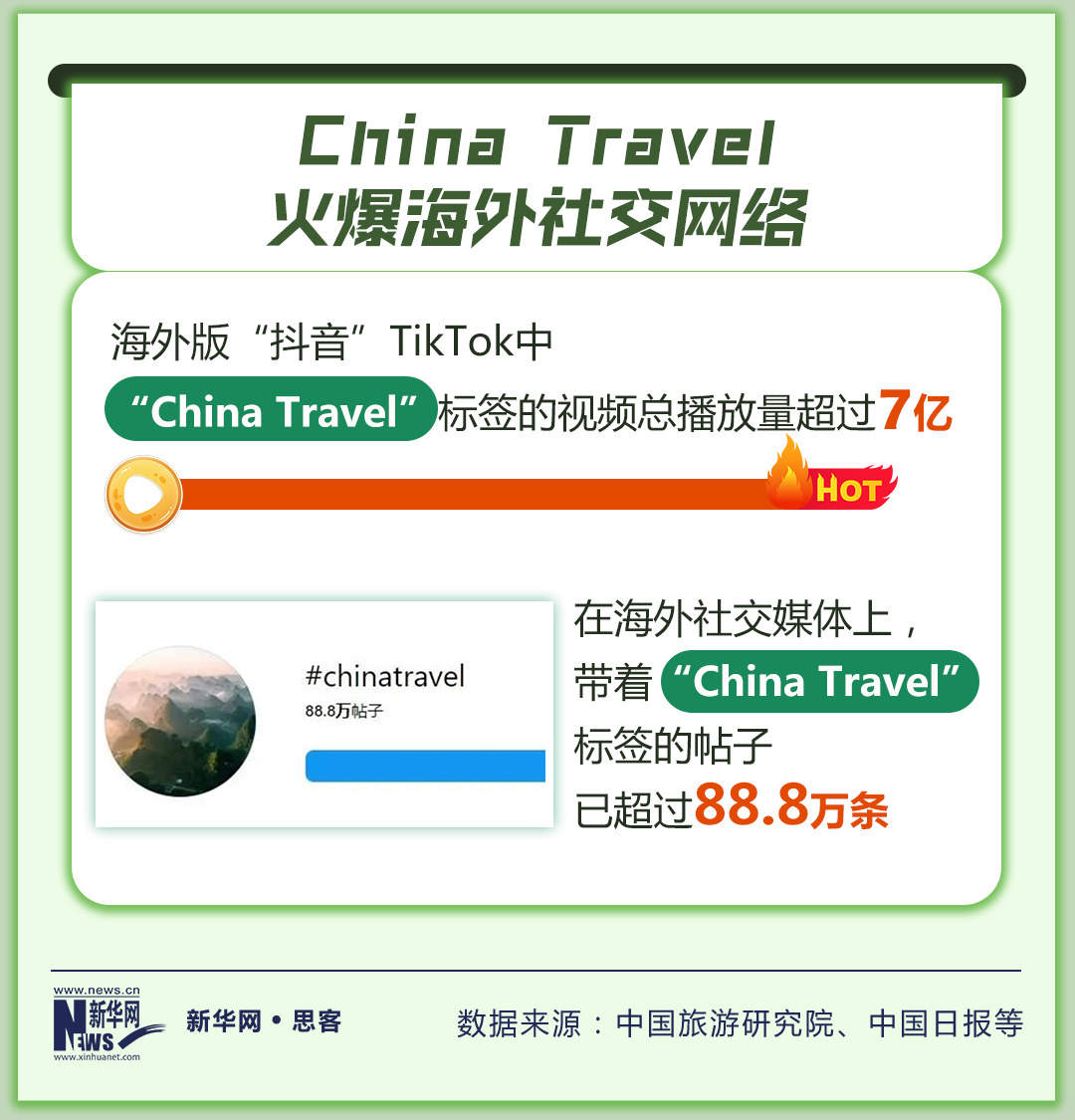 越来越多外国游客开始在短视频、社交平台上分享他们来华旅游的点点滴滴,“China Travel(中国游)”相关话题可以说是“拍一个火一个”。在海外版“抖音”TikTok上带“China Travel”标签的视频总播放量超过7亿。该话题之所以能成为新的“流量密码”,一大原因在于外国网友通过这些分享看到了与一些西方媒体报道中不同的景象。游玩中国城市、品尝中华美食、体验中国非遗技艺……外国友人在旅行中不仅体验了中国的美食美景,也看到热情友善的中国人民,感受到中国现代化的基础设施、丰富的历史文化。这种冲破信息茧房带来的强烈反差感,让外国游客为看到真实、生动的中国感到好奇而兴奋。
