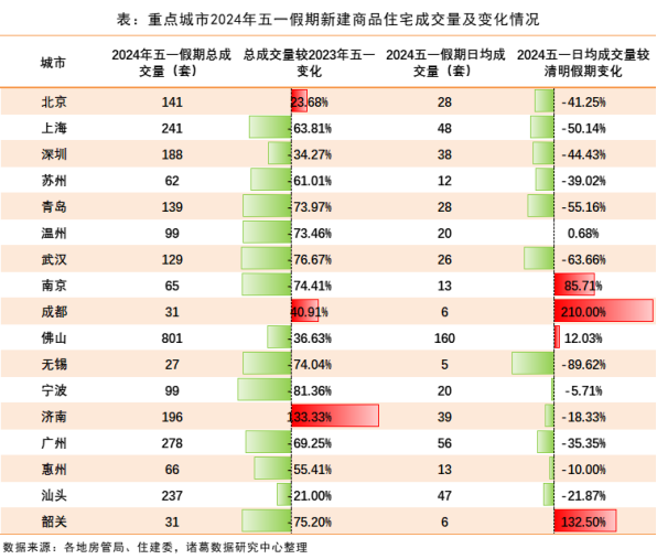 根据诸葛数据研究中心5月6日发布的监测数据,今年“五一”期间,北京新房成交表现好于去年同期,成交量同比涨超20%。但和今年清明假期新房表现对比来看,包括北京在内的多数城市仍处于低温运行阶段,北京降幅在41.25%,成交复苏待进一步改善。