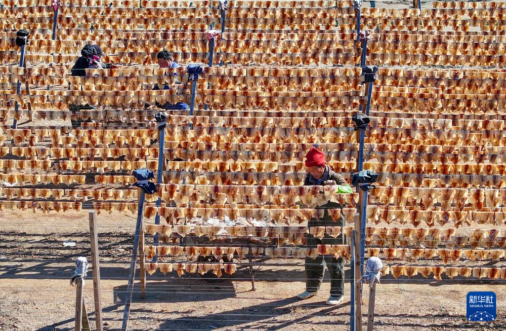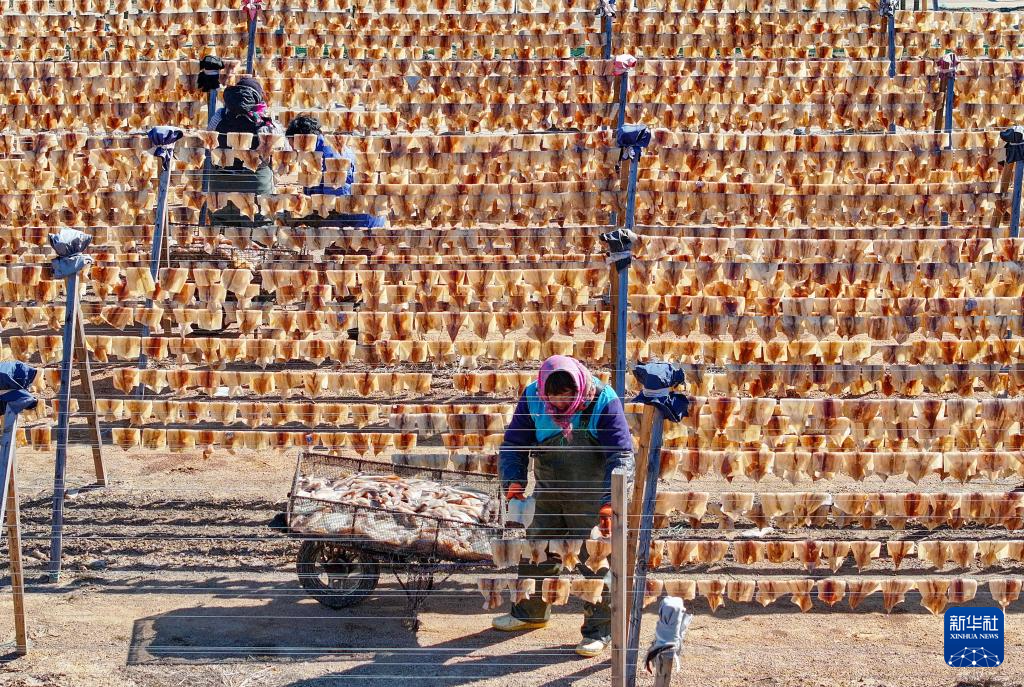 随着鱿鱼捕捞季的到来,在山东省荣成市南部沿海渔村,随处可见晾晒鱿鱼的场景。近年来,随着电商平台的兴起,荣成市的鱿鱼干通过网络销往全国各地,成为许多家庭餐桌上的美味佳肴。