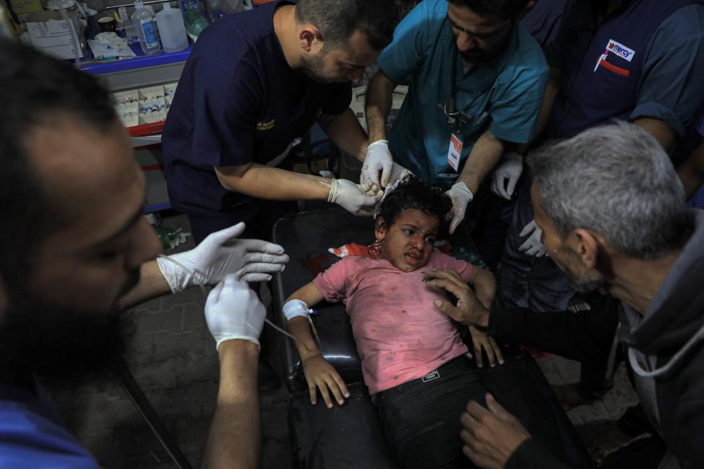 5月8日,在加沙地带南部城市拉法,一名受伤的儿童在临时诊所内接受救治。新华社发(里泽克·阿卜杜勒贾瓦德摄)
