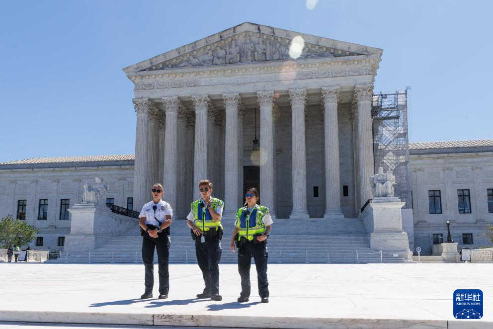 7月1日,警察在美国首都华盛顿的美国联邦最高法院前执勤。新华社发(亚伦摄)