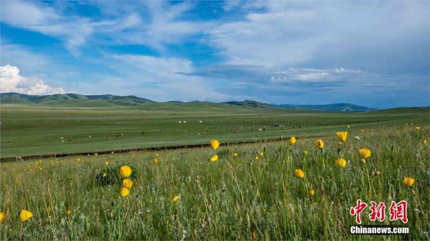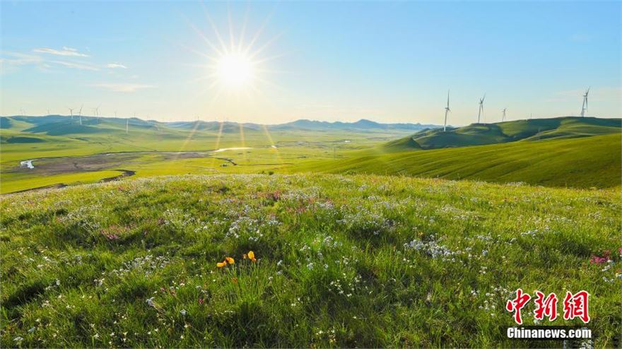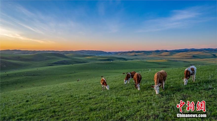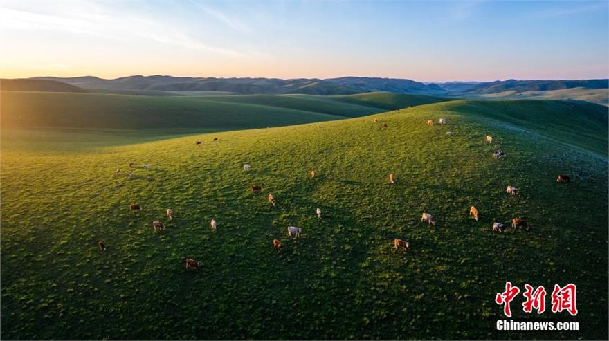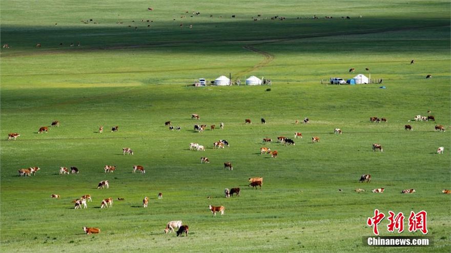 近日,扎鲁特山地草原上,碧绿草场如一块无边无际的地毯。扎鲁特山地草原位于内蒙古自治区通辽市西北部扎鲁特旗巴雅尔吐胡硕境内,距通辽市200公里。这里曾是辽代誉州古城将士们驯养战马的地方,又名军马场。这里水草丰美、风光旖旎,总面积达3万余亩。