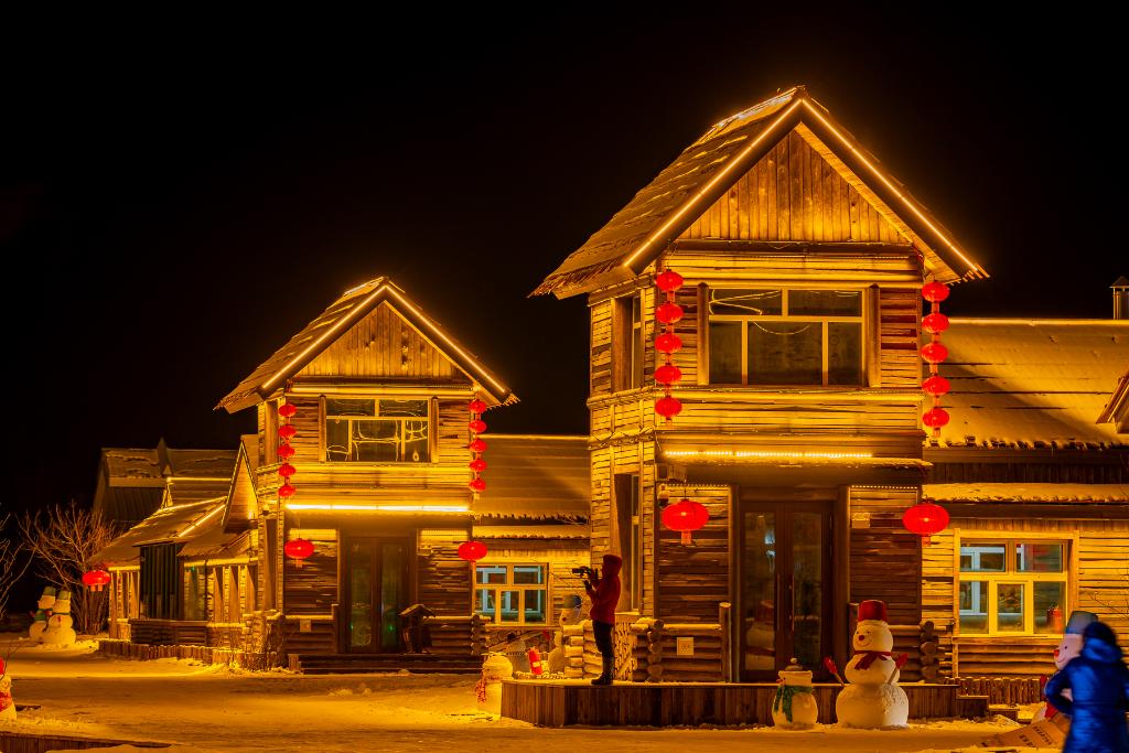 走出企鹅馆,中国冷极村中一排排原木结构的房屋飘出阵阵炊烟,高挂的大红灯笼为寒冬增添了几分温暖。不少游客在极地冰雪乐园体验冰雪项目。“坐上履带车在林海雪原中穿行,那种自由和刺激的感觉让人难忘。”来自上海的王女士说,“这里的冻梨和冰糖葫芦、森林八大碗等特色美食也让人回味无穷。”