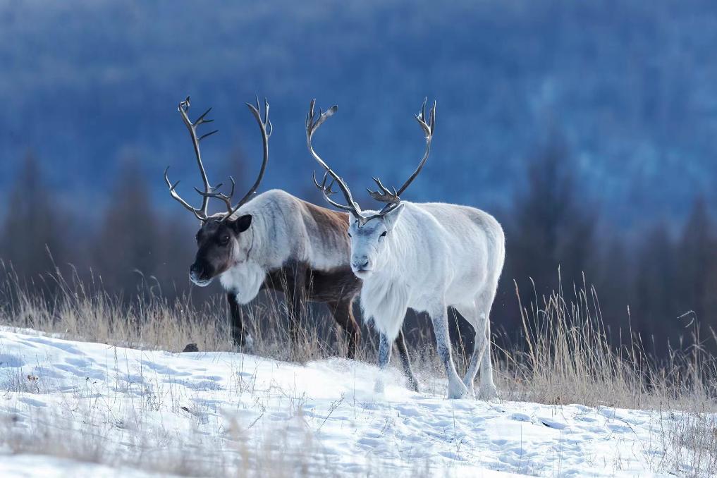 这是2023年12月7日拍摄的驯鹿。新华社发(王郑胤 摄)