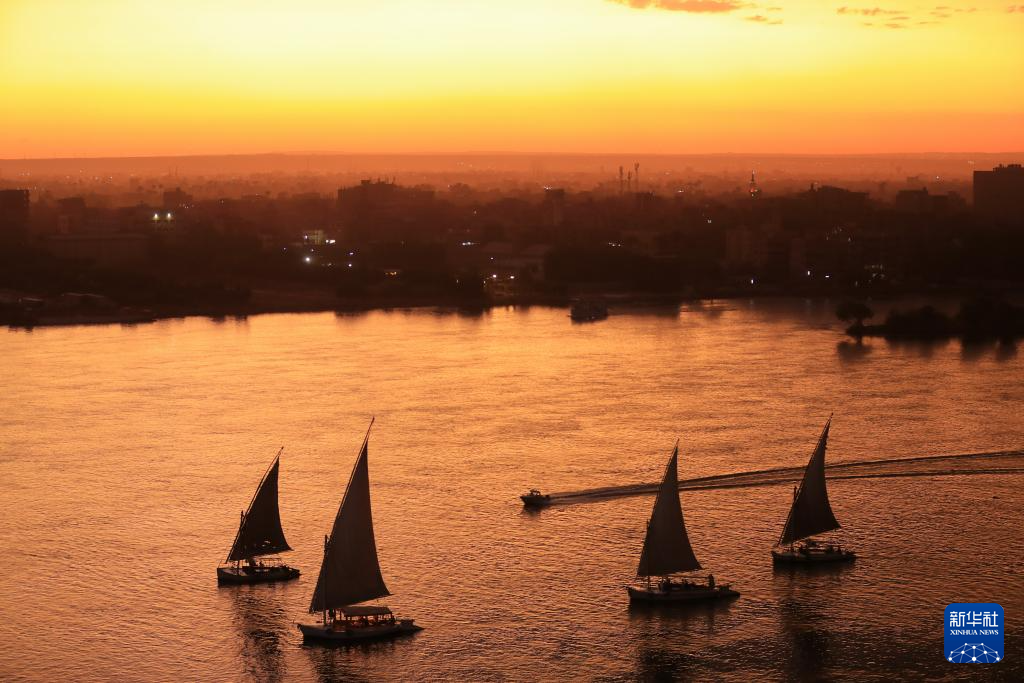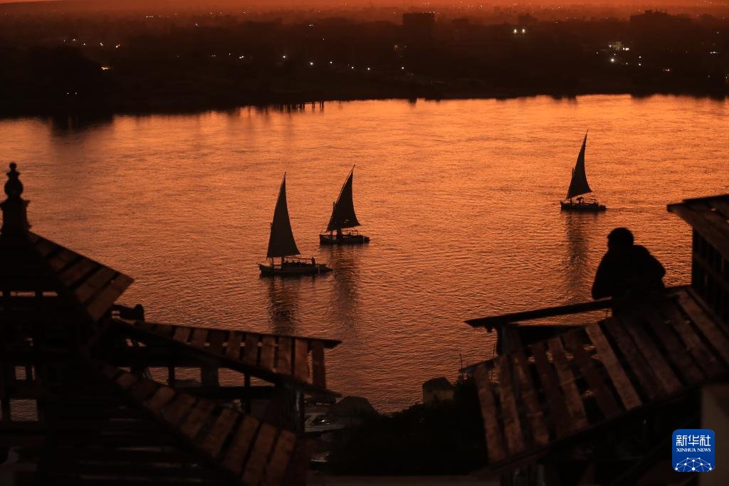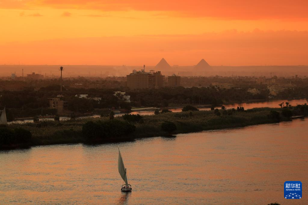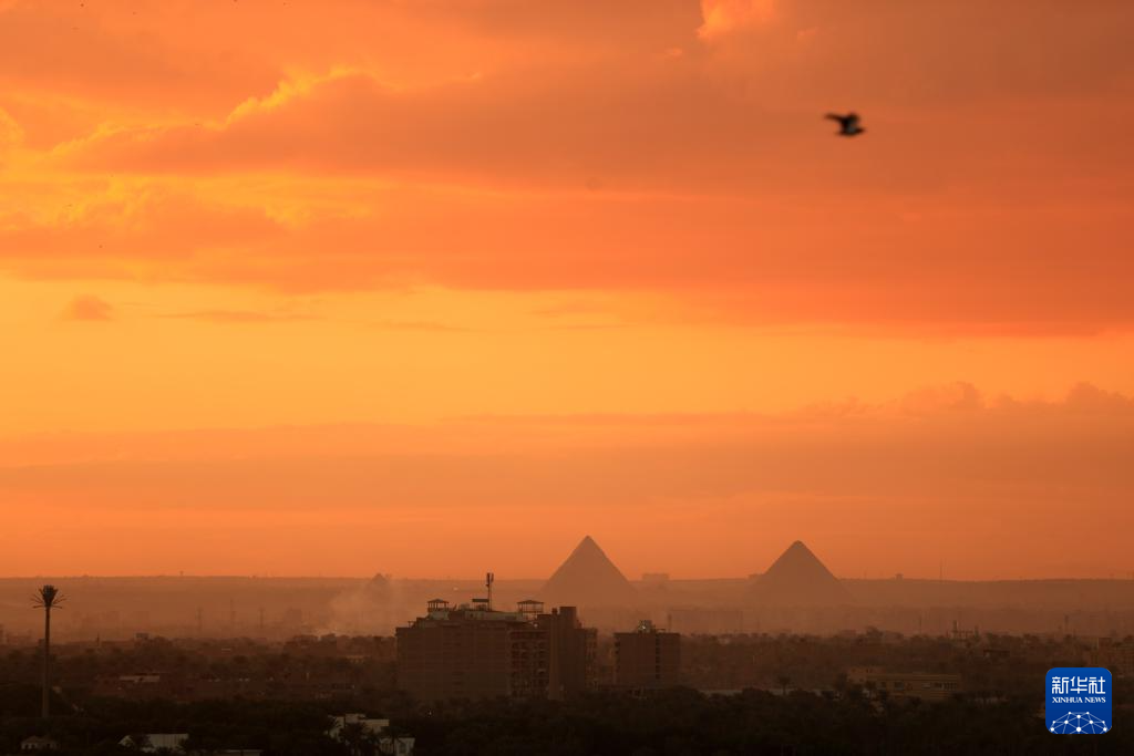 这是11月18日在埃及开罗拍摄的日落时分的吉萨金字塔群。