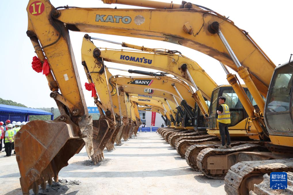 3月25日,广州新机场开工建设。广州新机场位于佛山市高明区,地处佛山、肇庆、江门、云浮四市地理中心,项目总投资418.08亿元,其中机场工程359.09亿元,将建设2条远距平行跑道、建筑面积约26万平方米的航站楼、94个机位以及相应配套设施,预计能满足年旅客吞吐量3000万人次、货邮吞吐量50万吨、飞机起降26万架次的运营需求。新华社记者 卢汉欣 摄