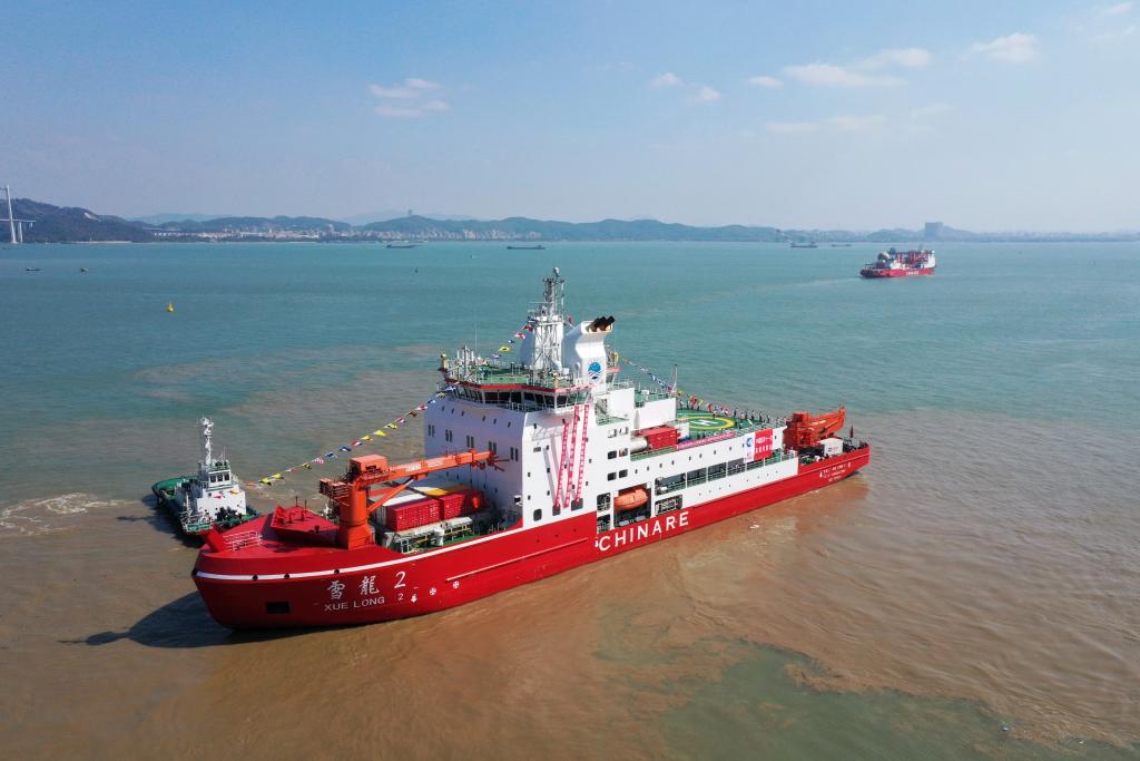 2024年11月1日,“雪龙”号和“雪龙2”号船从广州南沙国际邮轮母港码头出发(无人机照片)。当日,由自然资源部组织的中国第41次南极考察队,劈波向南、破浪出征,开启为期近7个月的科考征程。此次考察将开展南极秦岭站配套设施设备建设,围绕气候变化对南极生态系统的影响与反馈开展调查,广泛开展科研和后勤保障领域的国际合作。新华社记者 黄国保 摄