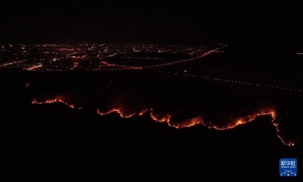 这是3月26日凌晨拍摄的安徽省庐江县东顾山林场火情(无人机照片)。新华社记者 杜宇 摄
