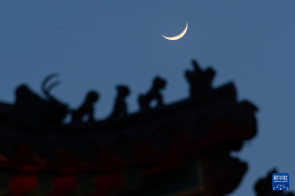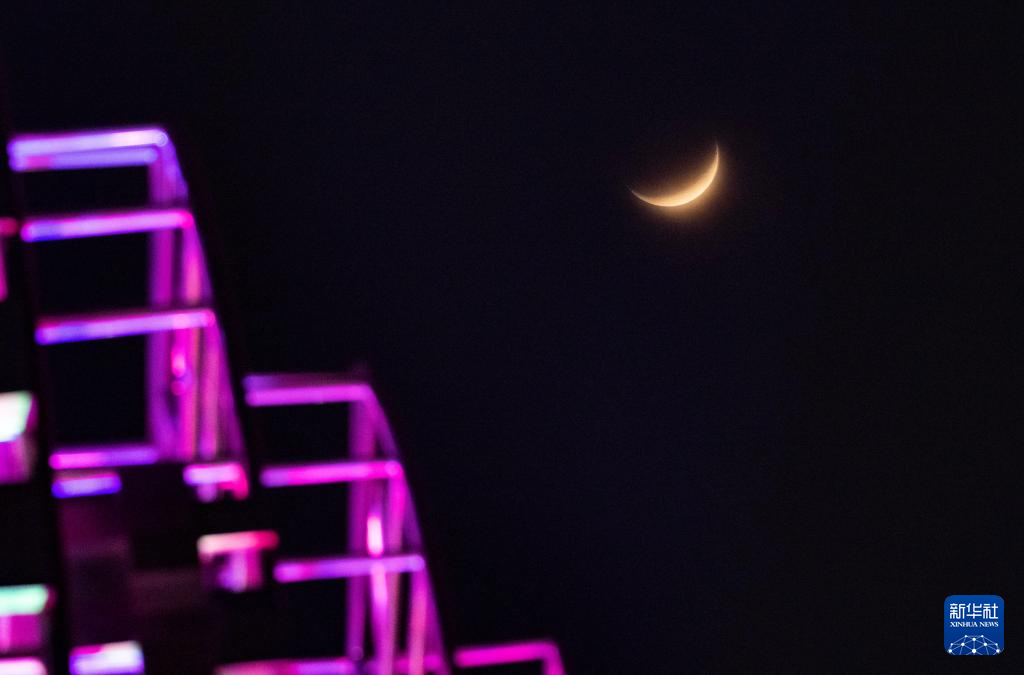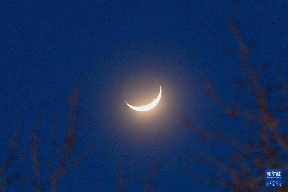4月1日在黑龙江省大兴安岭地区加格达奇区拍摄的“年度最大蛾眉月” 。