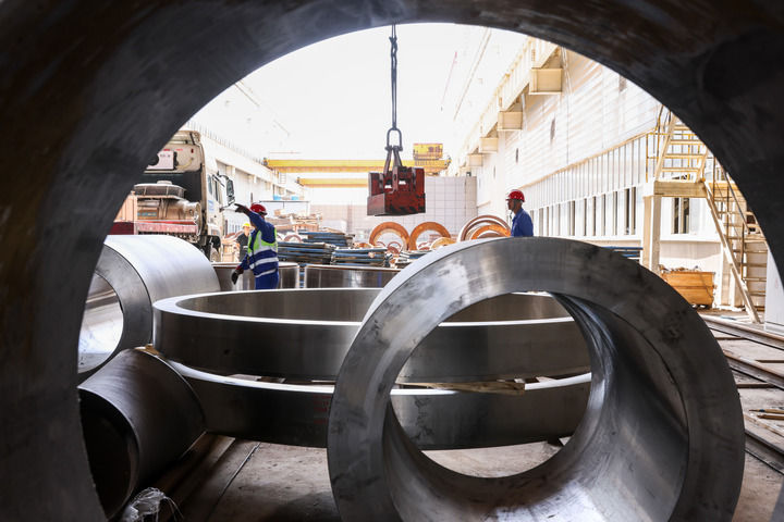在兰州兰石集团高端装备产业园,工人在生产车间作业(2024年7月25日摄)。新华社记者 吕帅 摄
