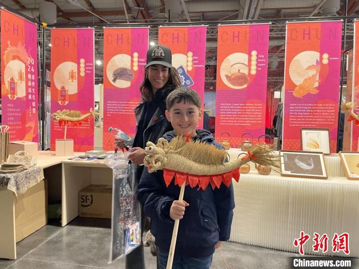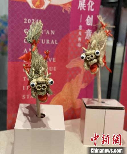 展览会上展出的淳安汾口草龙,以特色材质工艺配上红色的扎带,展现出憨态可掬的可爱形象。杨奇 供图