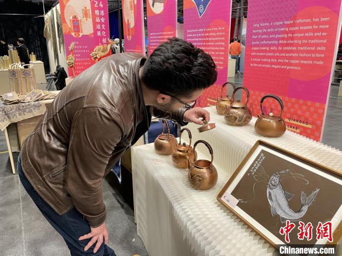 此次展出的文创产品包括千岛湖鱼拓、里商仁灯、汾口草龙、八都麻绣、青溪龙砚、铜壶、鱼迹点绘等,吸引了诸多外国友人驻足。