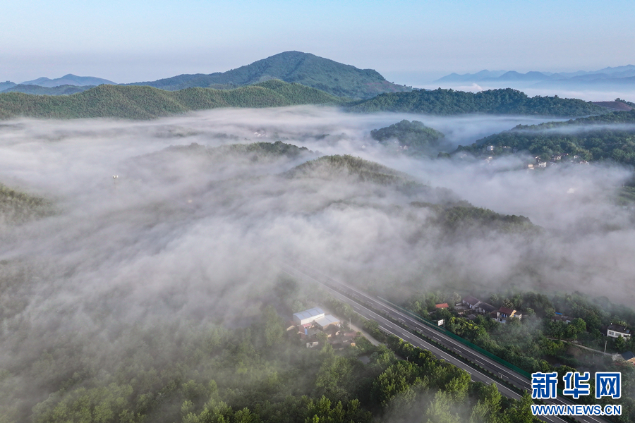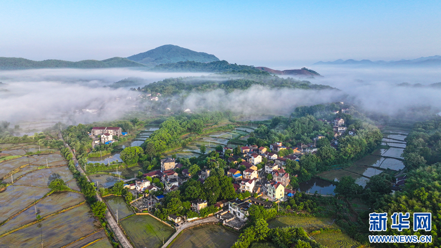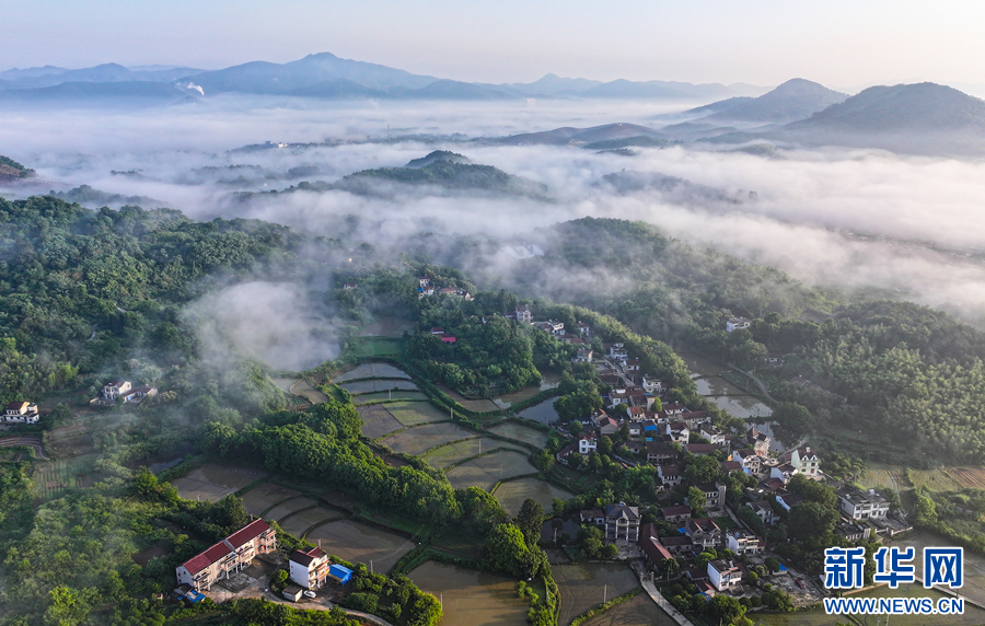 近日,安徽省芜湖市繁昌区繁阳镇范马村上空云雾缭绕,山峦若隐若现,构成了一幅和美乡村的生态画卷。
