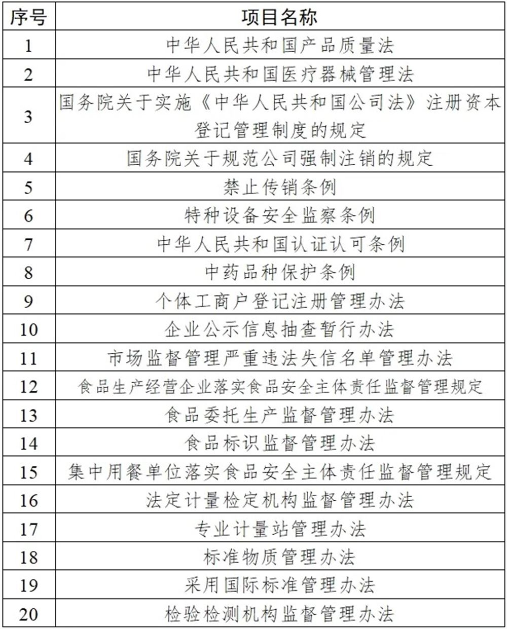 重点立法项目列表。图片来源:国家市场监督管理总局微信公众号