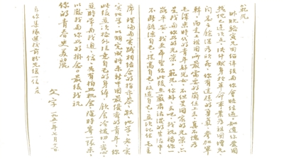 范儿,知道你爱国热忱已达顶点,决计献身于革命事业,为祖国增光。问悉之余,深为欣喜……你好好地去吧,我祝福你一路平安,我更希望你在此后严肃活泼的生活中,必须记住毛主席理论与实践相结合的指示……不断锻炼自己、提高自己、改造自己,以期成为将来新中国最优秀的青年……