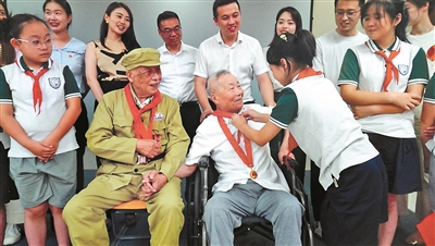 在征得老人们及家属的同意后,8月15日,“兵之初”公益服务中心策划了一场时隔18年的相见会,韩全富、俞志超两位老人双手紧握,曾经一起在枪林弹雨中并肩作战的记忆,如同电影般一遍遍在脑海回放,他们倾诉着多年来的思念,回忆着那些一起历经生死的战友们,在场的志愿者及学生无不泪目。