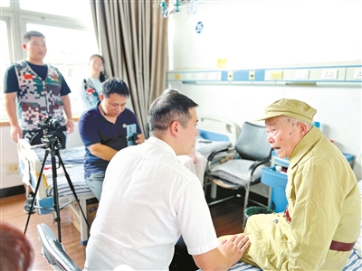 之后,在韩全富和傅志康二位老人的委托下,王欢江又赶往滨江康复养老医院看望和二老一同参加抗美援朝的91岁老战友俞志超。他们三人所在的部队是辎重兵部队,主要负责仁川火车站和仓库的物资搬运与装卸任务。早年间,三人时常联系叙旧,但近几年由于年岁渐长,眼花耳背,加之腿脚不便,他们联系渐少,细细算来,三人已经有18年未见面。