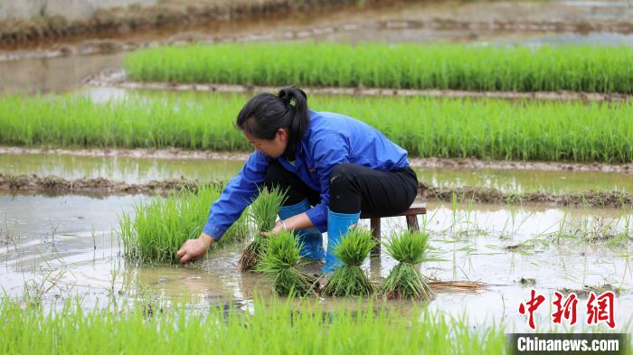 4月24日,在广西三江侗族自治县良口乡南寨村,一名妇女在拔秧。龚普康 摄