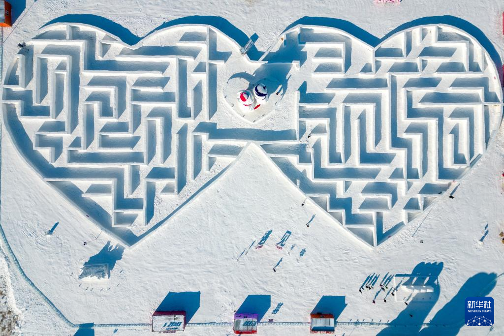 1月15日,游客在“尔滨之心欢乐岛”内游览(无人机照片)。