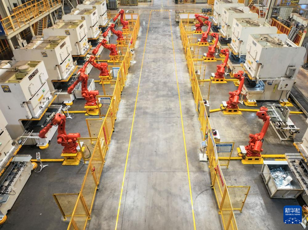 9月27日,机械臂在位于宁乡市金洲新城的格力暖通制冷设备有限公司生产线上作业(无人机照片)。新华社记者 陈泽国 摄