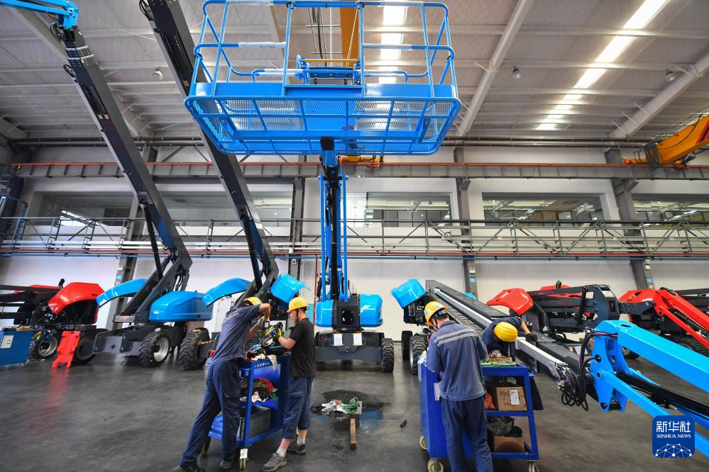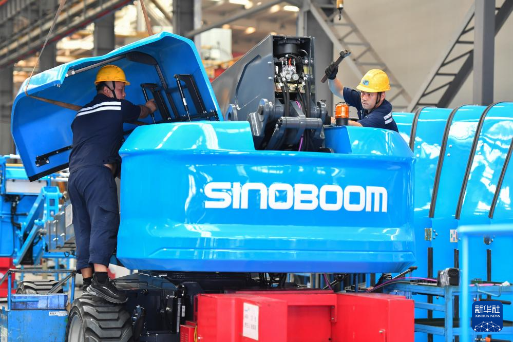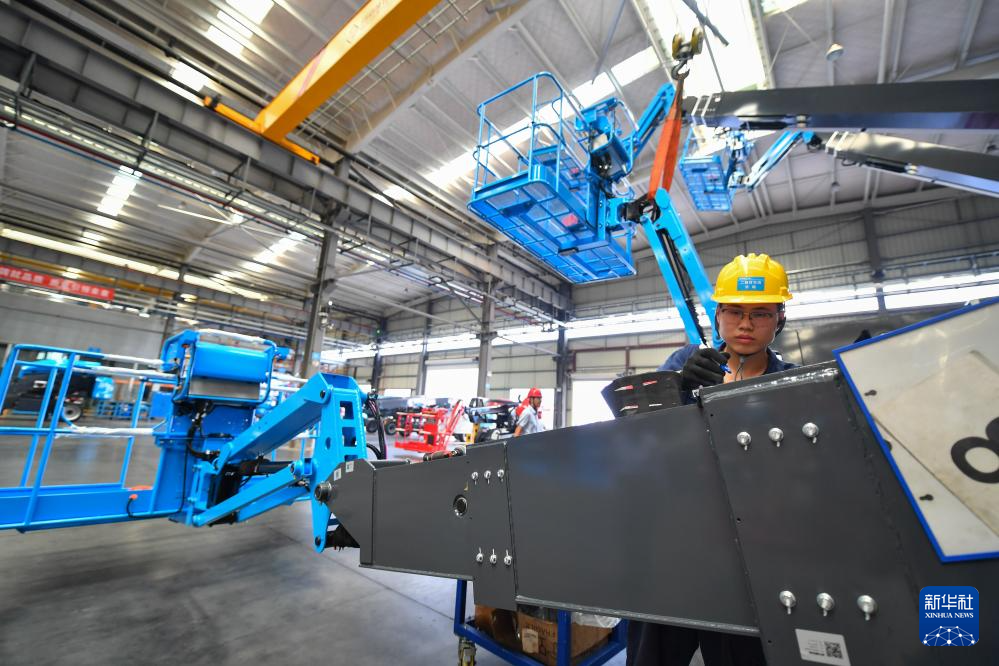 工作人员在位于宁乡市的湖南星邦智能装备股份有限公司高空作业产品装备车间作业(9月27日摄)。新华社记者 陈泽国 摄
