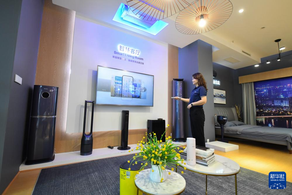 9月27日,工作人员在位于宁乡市金洲新城的格力暖通制冷设备有限公司展示智能家电使用场景。新华社记者 陈泽国 摄