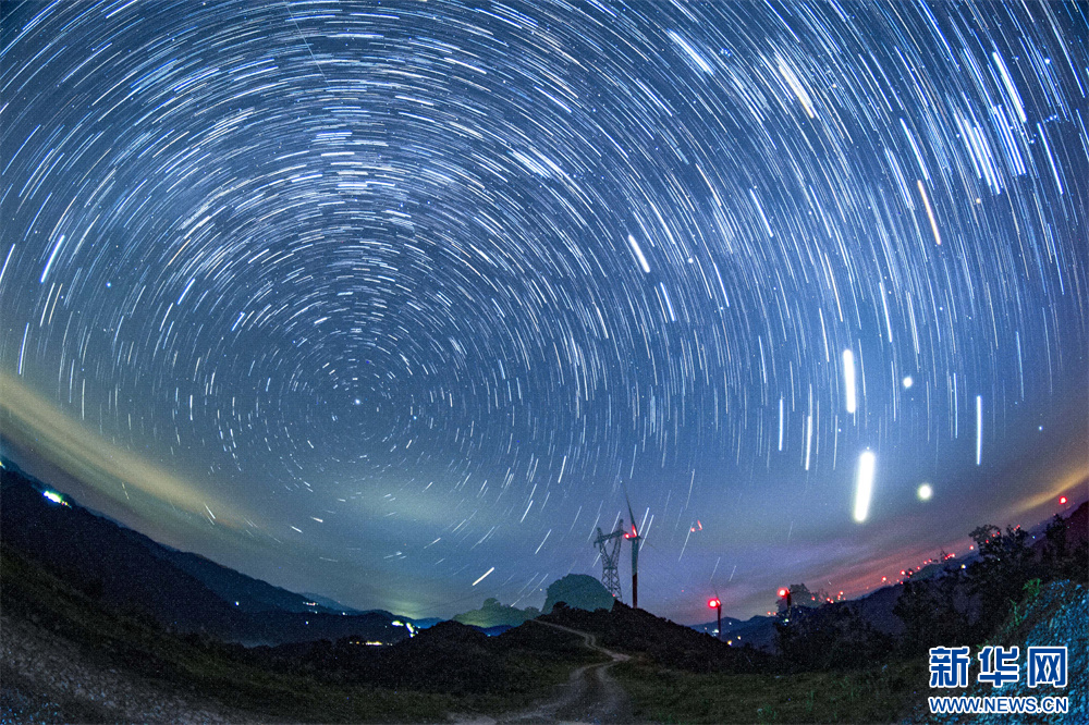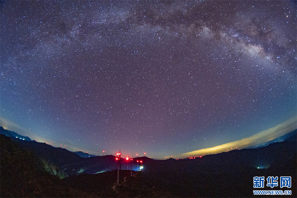 8月25日拍摄的贵州省从江县加榜乡达棒山风电场星空。新华网发(吴德军 摄)