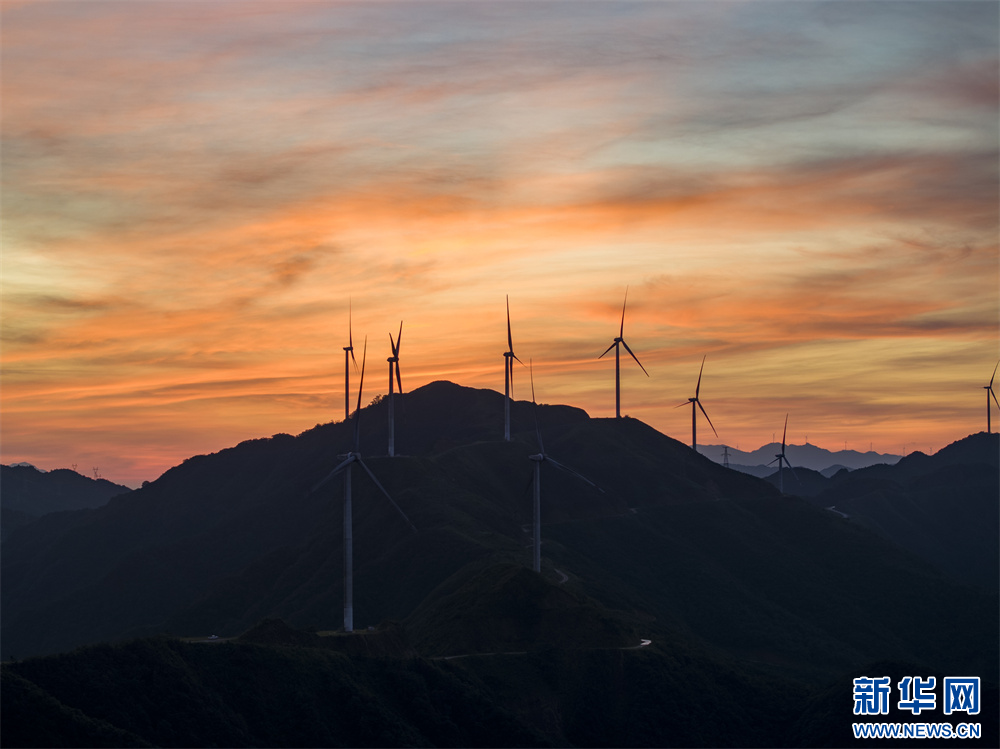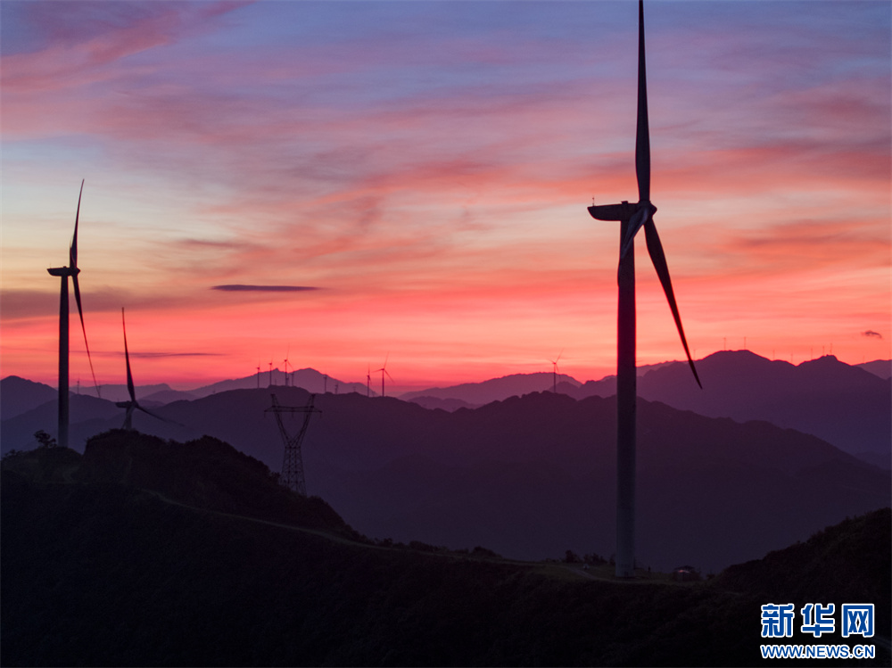 8月26日拍摄的贵州省从江县加榜乡达棒山风电场朝霞。新华网发(吴德军 摄)
