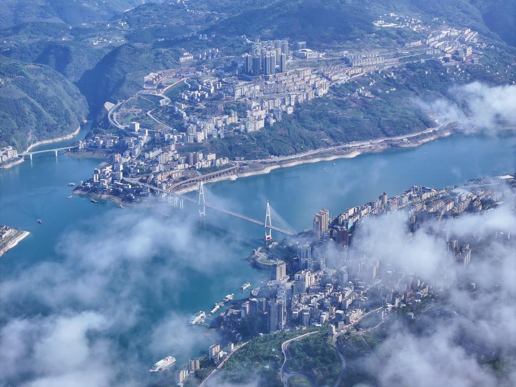 2025年4月10日,一场春雨过后,位于湖北省西部山区恩施土家族苗族自治州巴东县的长江三峡巫峡口雾气缭绕,风景如画,吸引众多游客游览观光。新华社发(赵军 摄)