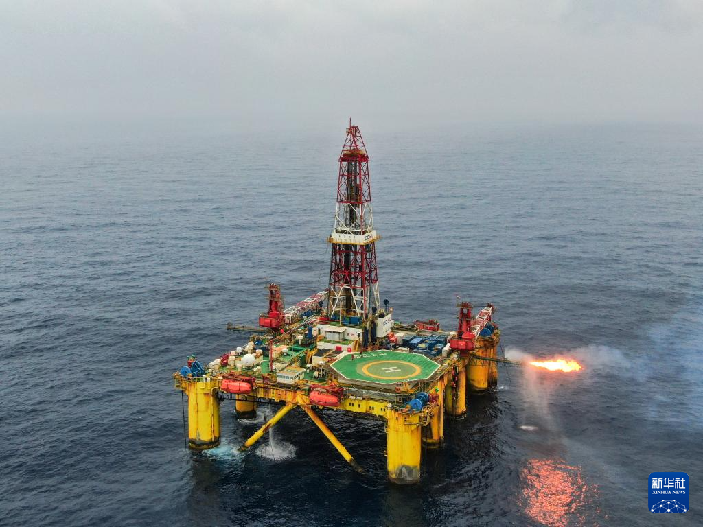 “南海二号”钻井平台在惠州19-6油田海域进行钻探作业。