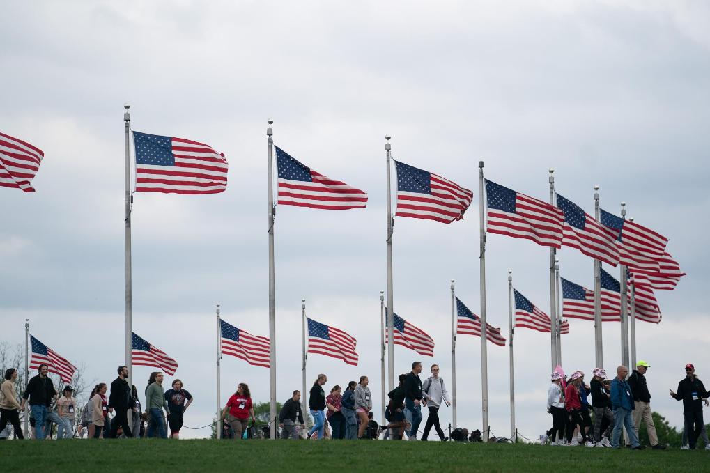 2024年4月25日,游客在美国首都华盛顿的国家广场游览。新华社记者刘杰摄